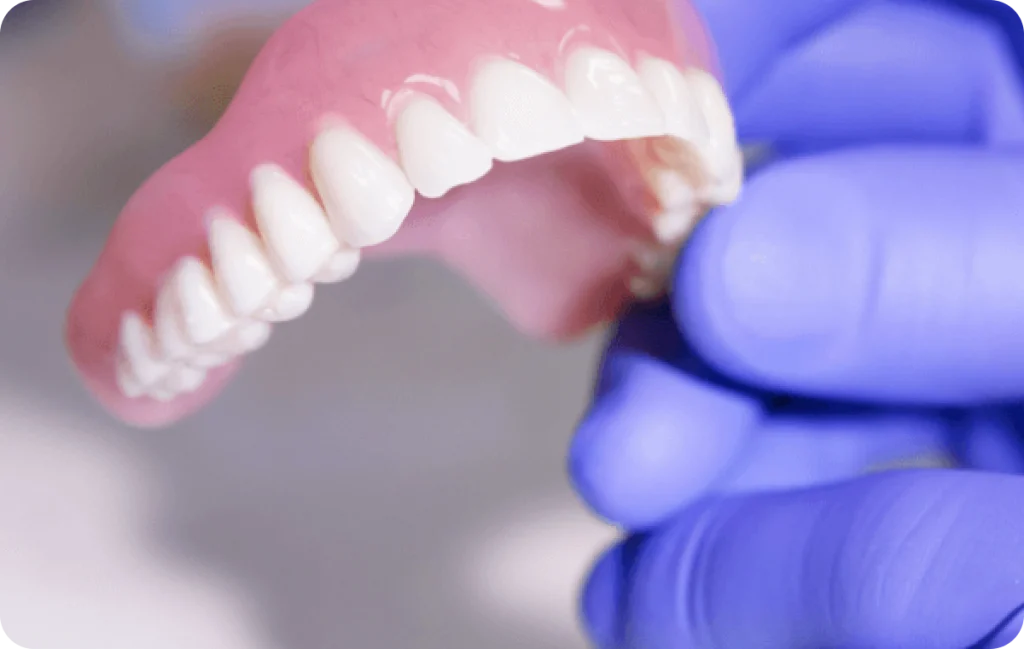 Lorsqu’il n’y a plus aucune dent naturelle, on parle de prothèse amovible complète. Elle remplace l’ensemble des dents d’une ou des deux mâchoires. La base est réalisée en résine acrylique et reproduit la gencive, tandis que les dents artificielles sont disposées pour offrir une apparence naturelle et une bonne fonction masticatoire.